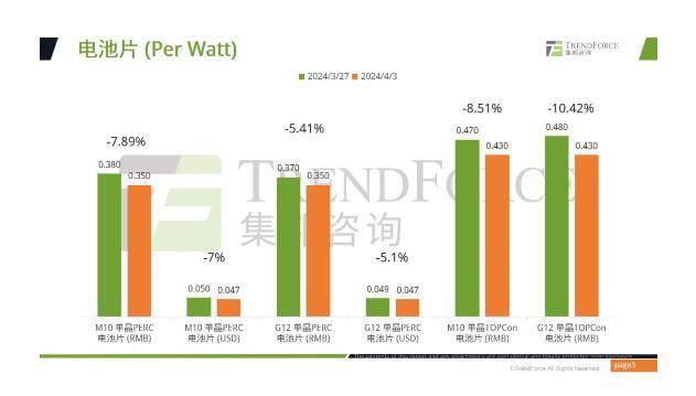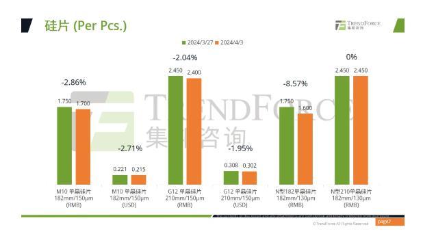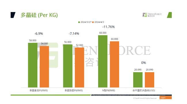 TrendForce集邦咨询旗下新能源研究中心2024年4月3日报价:N型硅料价格下跌11.76%