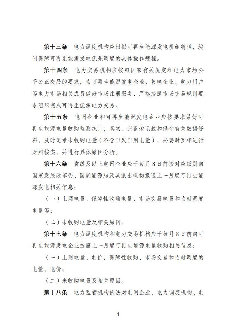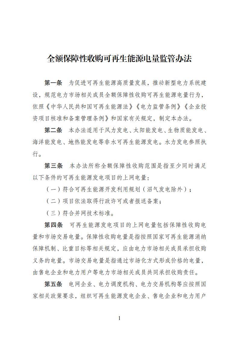 重磅!国家发改委印发《全额保障性收购可再生能源电量监管办法》