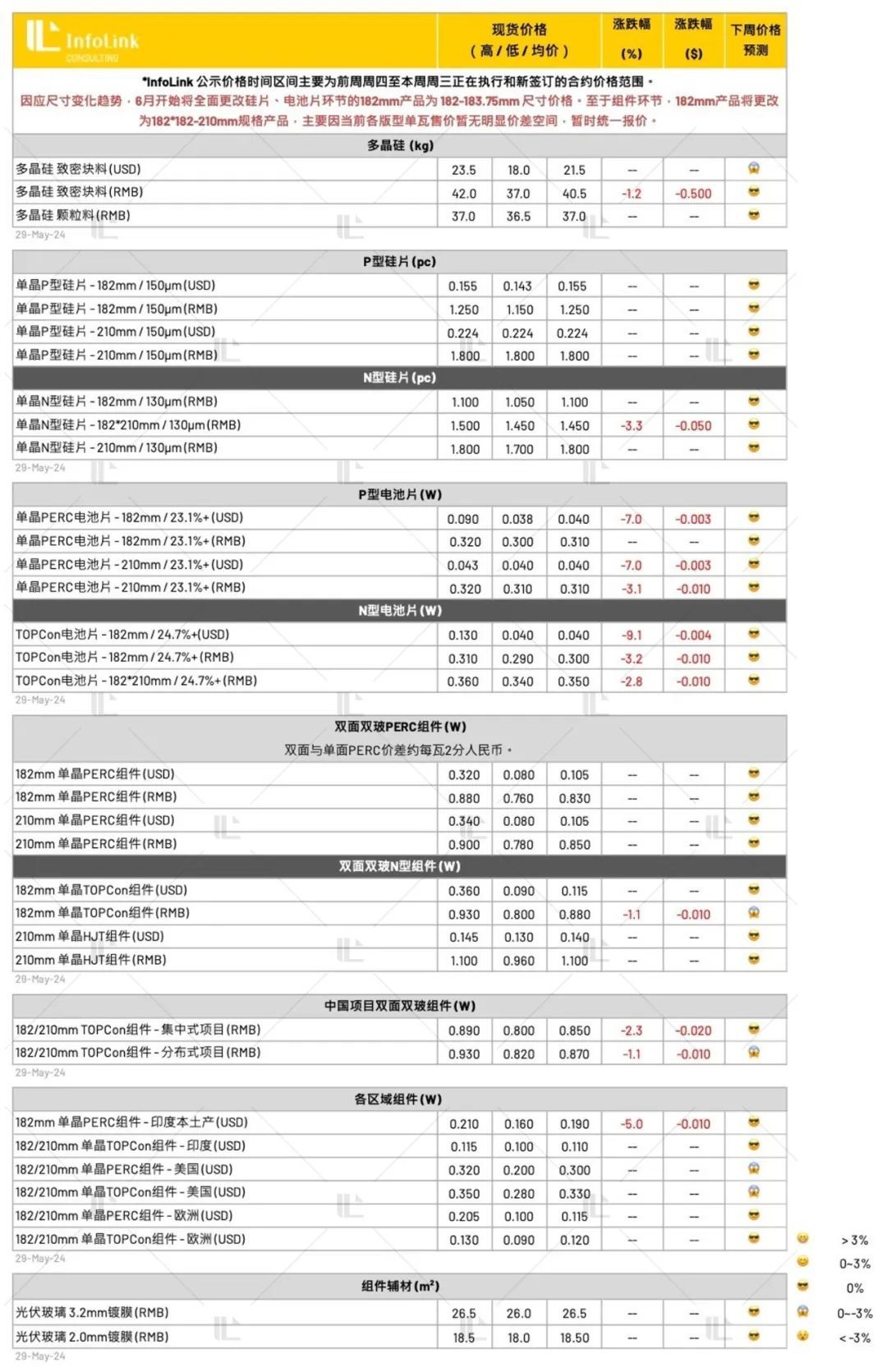 5月29日,InfoLinkConsulting发布本周光伏供应链价格。