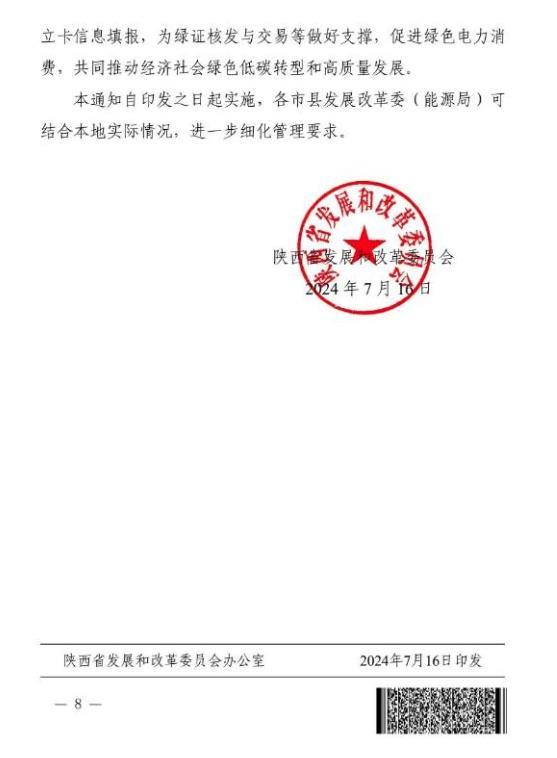 各市县发展改革委(能源局)及电网企业要扩大绿证政策宣传,及时审核流程,各投资主体要主动做好建档立卡信息填报,为绿证核发与交易等做好支撑,促进绿色电力消费,共同推动经济社会绿色低碳转型和高质量发展。(来源:陕西省发改委)