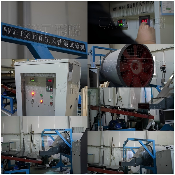 面对自然灾害中的强风挑战,彩麟光伏瓦同样表现出色。在抗风性能测试中,实验室利用高速风扇模拟了极端风速条件下的风压环境,测试了光伏瓦的固定效果和整体抗风能力。结果显示,即使在模拟的极端风速下,彩麟光伏瓦依然牢牢固定在测试框架上,没有发生任何松动或脱落现象,确保了在实际应用中能够有效抵御强风侵袭,保障屋顶结构的完整性和安全性。