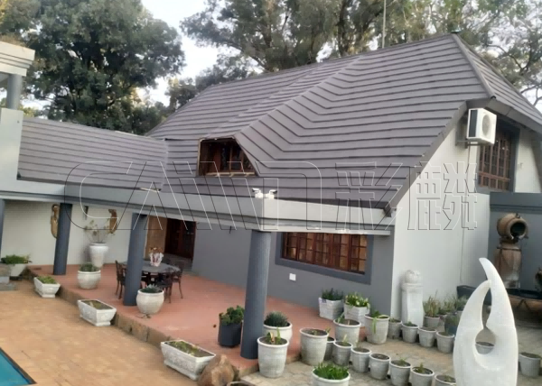 在南非,彩麟木纹型彩石金属瓦受到了多种类型建筑的青睐。无论是传统的南非荷兰风格建筑,还是现代简约风格的建筑,都能找到与之匹配的彩石金属瓦。其丰富的色彩选择,如梦幻红、中国红、咖啡棕等,能够满足不同建筑风格和个人喜好的需求。同时,彩麟木纹瓦的轻质高强特性,也大大减轻了建筑物的承重负担,尤其适用于一些老旧建筑或对结构承载能力有要求的建筑。